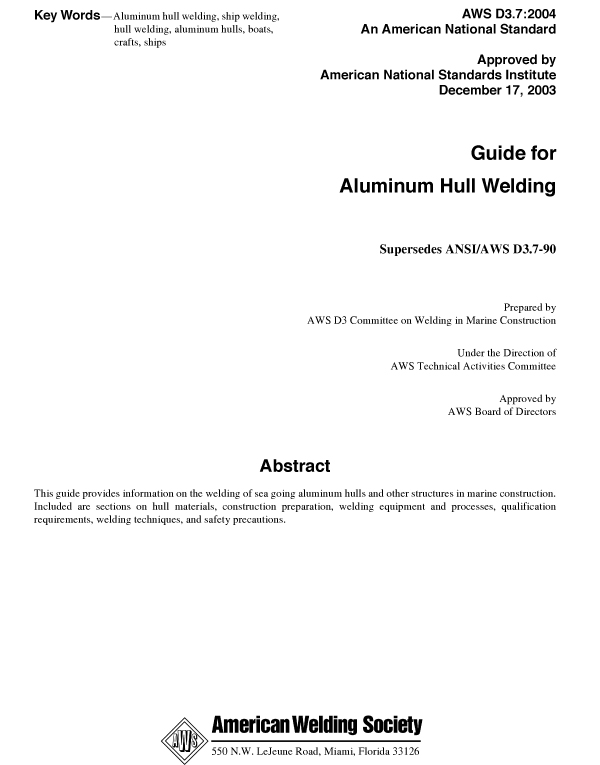 D3.7:2004 GUIDE FOR ALUMINUM HULL WELDING (HISTORICAL)