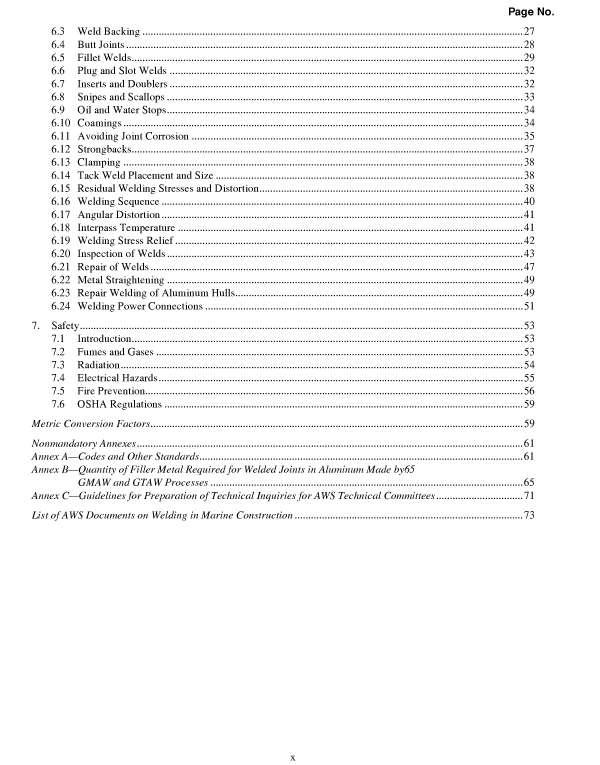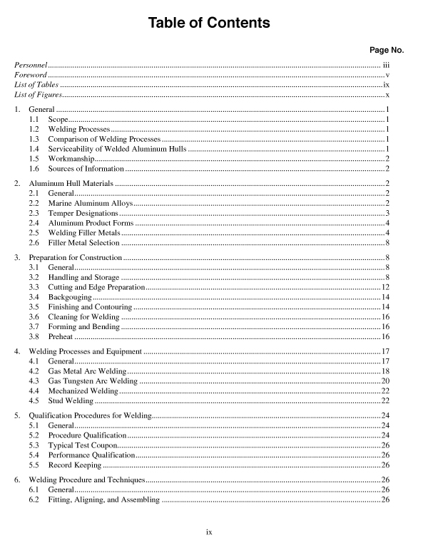 This guide provides information on the welding of sea going aluminum hulls and other structures in marine construction. Included are sections on hull materials, construction preparation, welding equipment and processes, qualification requirements, welding techniques, and safety precautions. ISBN 0-87171-690-9
