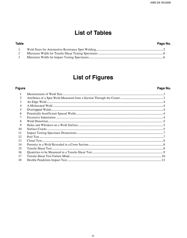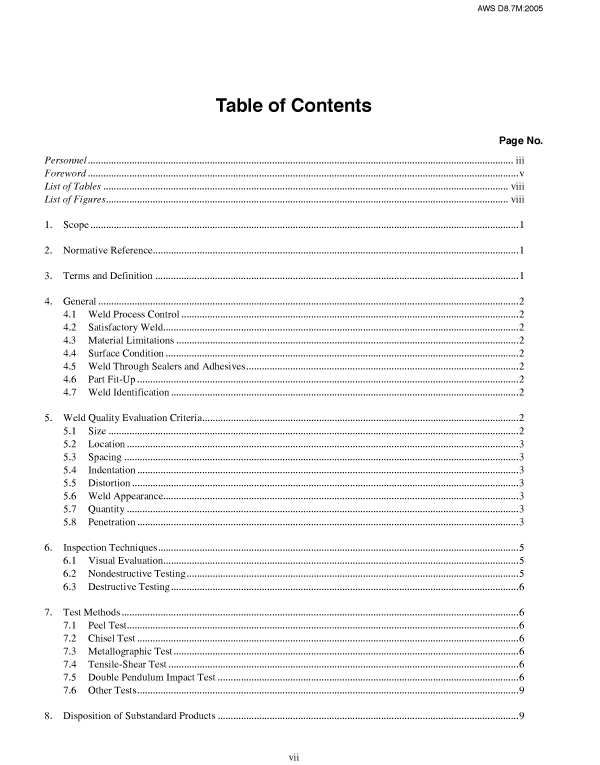 A concise quality checklist developed through the AWS SAE Joint Committee on Automotive Welding to assist automotive parts suppliers using bare and coated lowcarbon steels. Tables provide minimum spot weld spacing, contact overlap, and minimum weld diameter. ANSI Approved. ISBN 0-87171-732-8