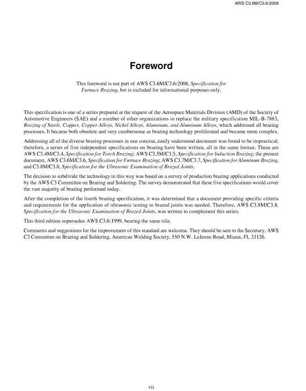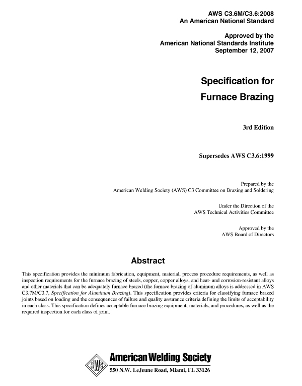 C3.6M/C3.6:2008 SPECIFICATION FOR FURNACE BRAZING (HISTORICAL)