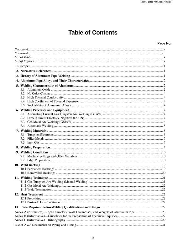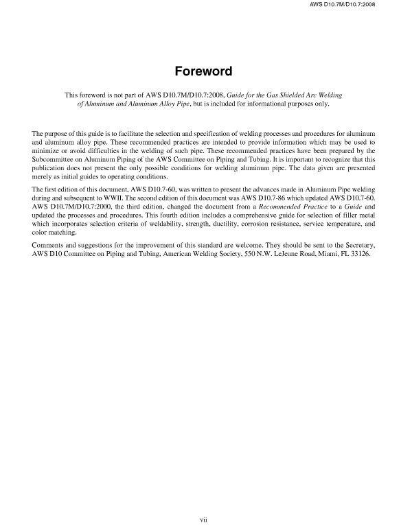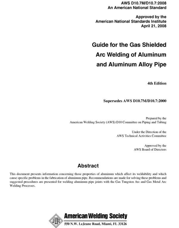 D10.7M/D10.7:2008 GUIDE FOR THE GAS SHIELDED ARC WELDING OF ALUMINUM AND ALUMINUM ALLOY PIPE