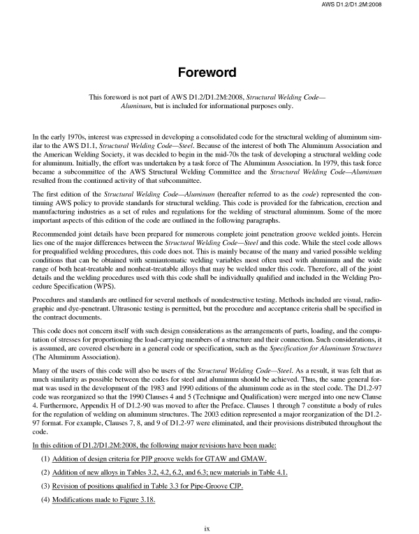 D1.2/D1.2M:2008 STRUCTURAL WELDING CODE ALUMINUM (HISTORICAL)