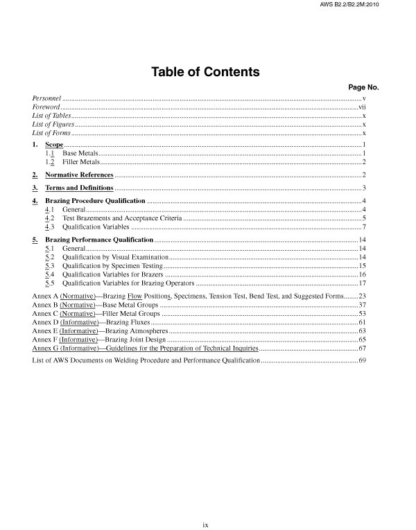B2.2/B2.2M:2010 SPECIFICATION FOR BRAZING PROCEDURE AND PERFORMANCE QUALIFICATION (HISTORICAL)